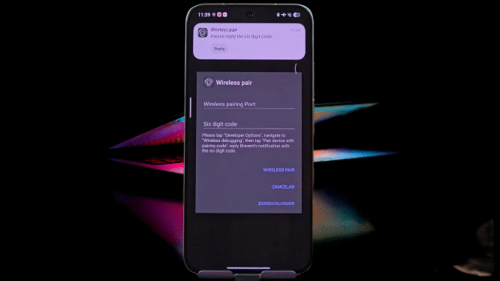 After enabling, tap Pair device with pairing code. The system will generate a 6-digit code on screen. Attention: This code is temporary and changes with each attempt. Write it down or keep the screen open.